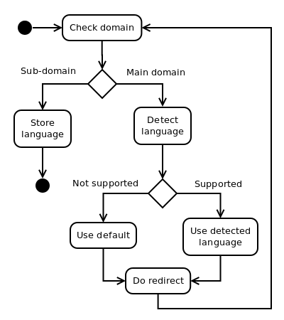 In the example of redirecting to a language sub-domain, we follow the next flow diagram:
